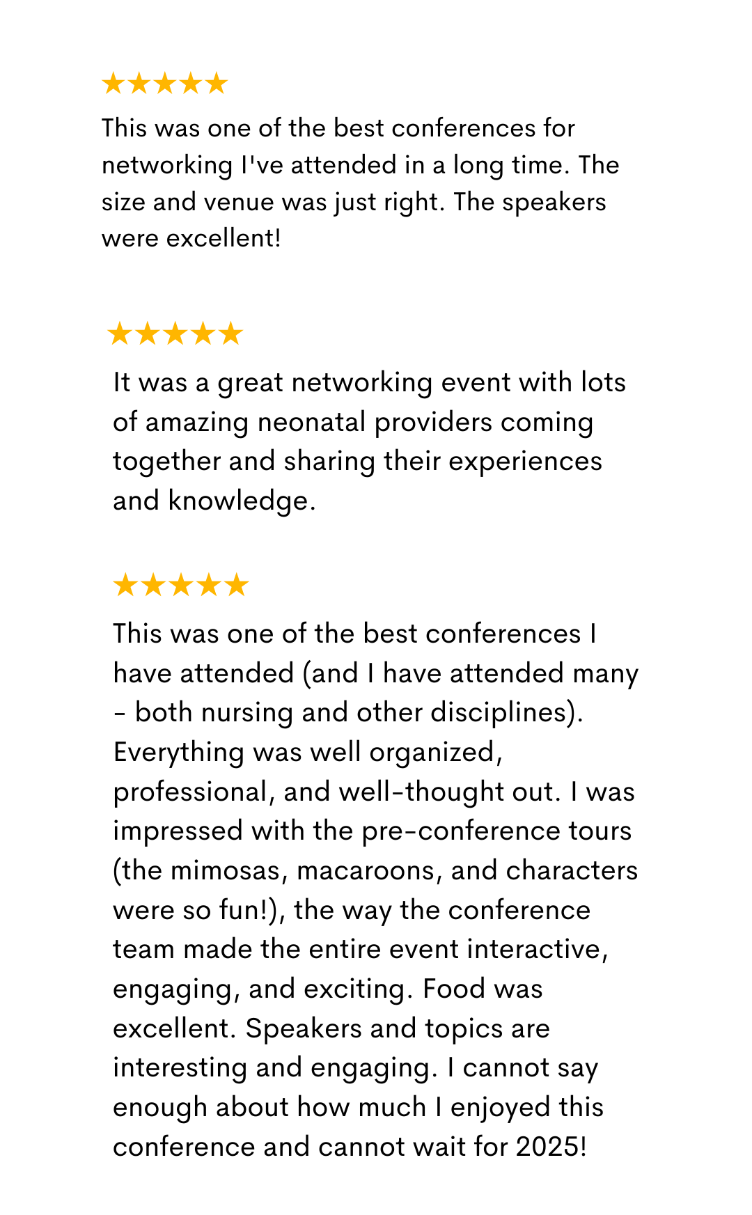 This is your chance to meet trailblazers in neonatal care, exchange ideas, and discover practices that will elevate your work. Whether you’re new to the NICU or a seasoned expert, you’ll leave this conference inspired and equipped to make an even greater impact.